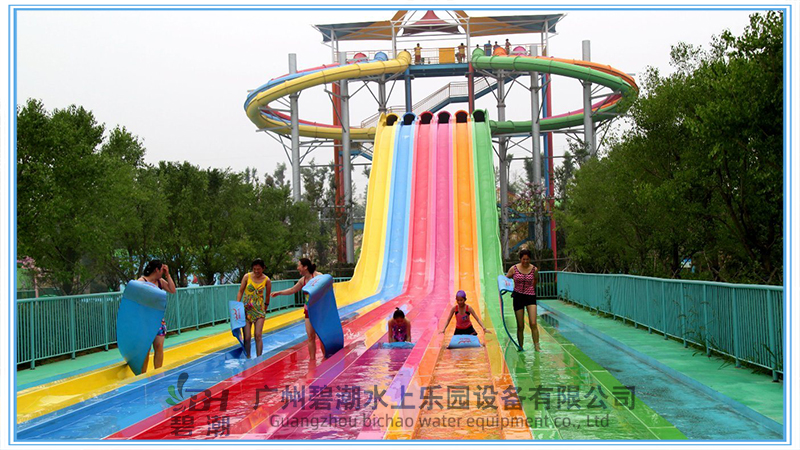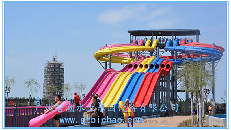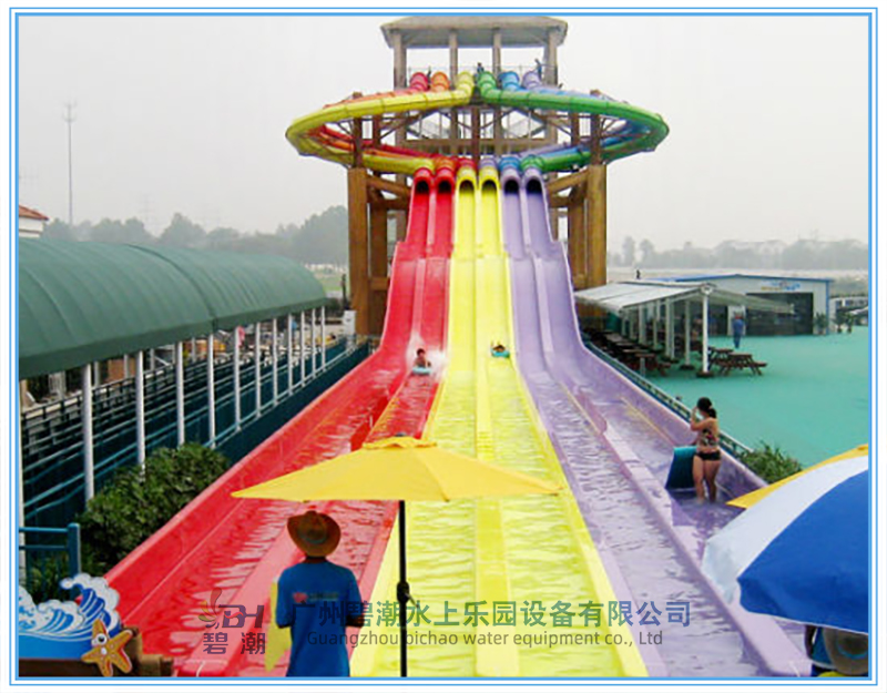水上樂園設(shè)備競賽滑梯同樣是一類非常經(jīng)典的水上樂園游玩水滑梯,多可以多道并列設(shè)計,一般為3~8道,可以用身體或浮墊滑行。參與者可以同時出發(fā)進(jìn)行比賽,滑道中間會設(shè)計一系列刺激的小坡,參與者們都將一一通過它們,最終沖向終點(diǎn)線。該設(shè)備的參與和互動性非常強(qiáng),同時具有很強(qiáng)的接待能力,讓游客可以多次參與到比賽當(dāng)中,獲取歡樂和暢快的獨(dú)特體驗。 滑梯的高度可以從幾米到幾十米都可以做,常用的滑梯內(nèi)寬為0.6米,多道組合并用。