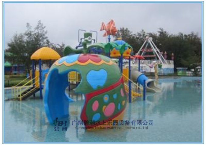 戲水小品蘋果屋造型優(yōu)美,是成人和兒童在炎炎夏日暫時休息的好去處。