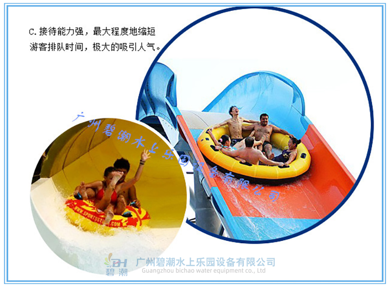 廣州碧潮水上樂園設備有限公司可根據客戶要求設計定制生產各種各樣不同高度、不同回旋方式的滑梯,為游客帶來歡樂和刺激,包括高速滑梯、螺旋滑梯、三彩滑梯、漂流滑梯等,是各水上樂園、游樂園的主打娛樂產品。